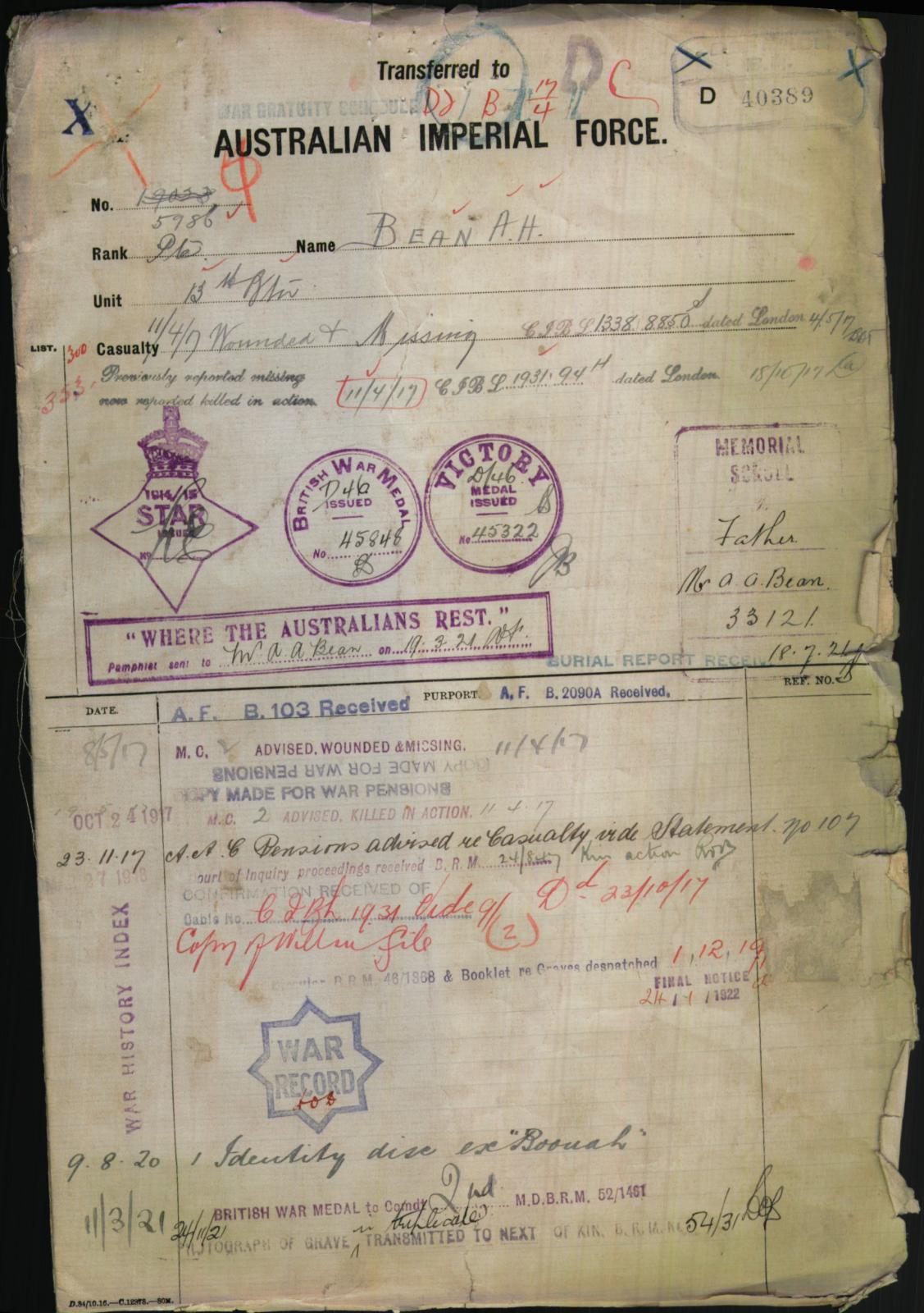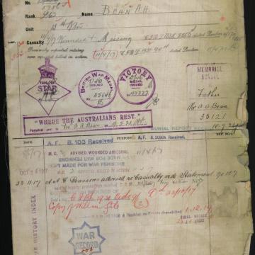 Published May 15, 2016 at 1127 × 1600 in Private Albert [Bert] Bean – Bullecourt Digger Share this: Email a link to a friend (Opens in new window) Email Print (Opens in new window) Print Share on X (Opens in new window) X Share on Facebook (Opens in new window) Facebook Like Loading... ‹ Return to post Leave a comment Cancel reply